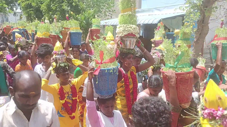 இருந்து திரளான பக்தர்கள் பால்குடம் , முளைப்பாரி எடுத்து மேல தாளங்கள் முழங்க முக்கிய வீதிகள் வழியாக கோவிலை வந்தடைந்தது.