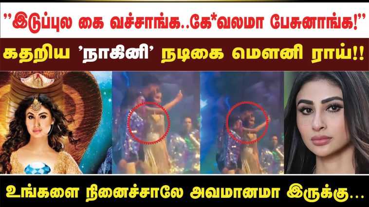 அத்துமீறல்: மேடைக்கு போகும்போது அங்கிருந்த சில பேர் போட்டோ எடுக்குற மாதிரி வந்து, மௌனி ராயோட இடுப்புல கை வச்சிருக்காங்க. உடனே அவங்க கையை எடுங்கன்னு சொல்லியிருக்காங்க.