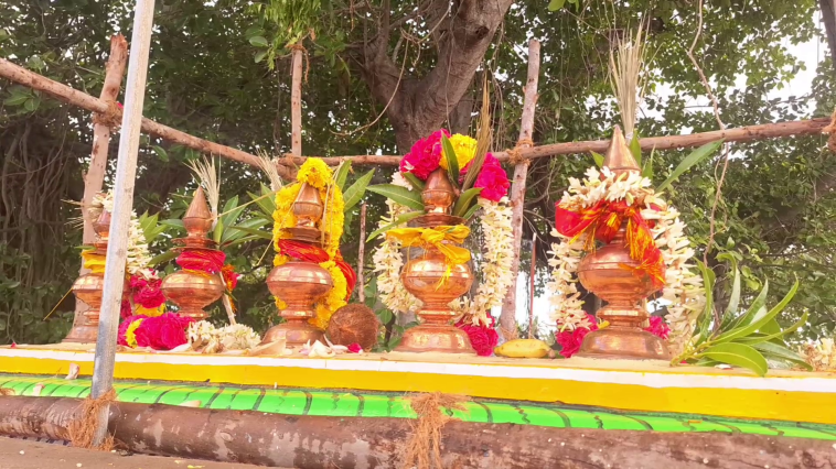 அப்போது ட்ரோன் கொண்டு பக்தர்கள் மீது புனித நீர் தெளிக்கப்பட்டது.
