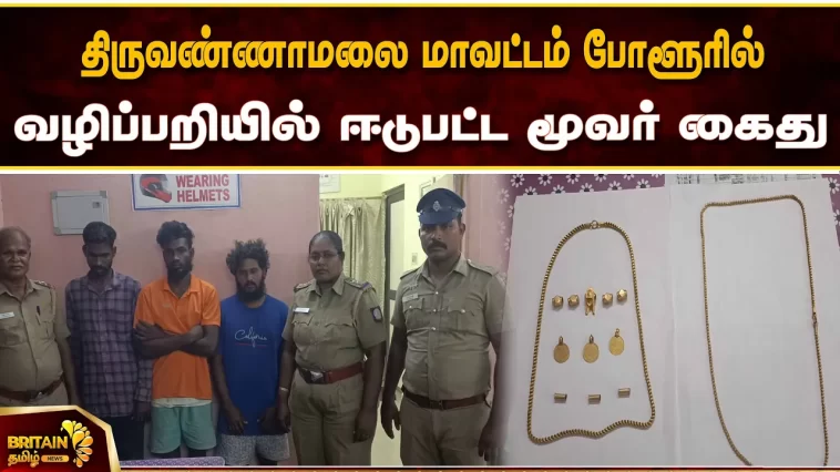 திருவண்ணாமலை மாவட்டம் போளூர் அடுத்த கொழாவூர், மற்றும் ராந்தம் உள்ளிட்ட கிராமங்களில் அடுத்தடுத்து வழிப்பறி சம்பவம் அரங்கேறி உள்ளது இதனைத் தொடர்ந்து வழிப்பறியில் நகையை பறிகொடுத்த தஞ்சியம்மாள் (40), மற்றும் குப்பு (68) ஆகியோர் ஒரே நாளில் போளூர் காவல் நிலையத்தில் புகார் அளித்துள்ளனர்.