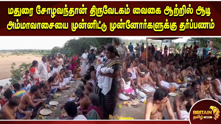 மதுரை சோழவந்தான் அருகே திருவேடகம் வைகை ஆற்றில் ஆடி அம்மாவாசையை முன்னிட்டு ஏராளமானோர் முன்னோர்களுக்கு தர்ப்பணம்