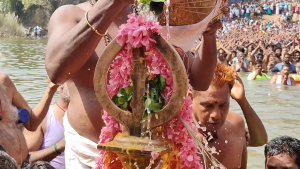 அதே சமயத்தில், காவிரி நதியில் திரண்டு இருந்த ஆயிரக்கணக்கானோர் புனித நீராடினர் தொடர்ந்து பஞ்சமூர்த்திகளுக்கும், மகா தீபாராதனை செய்யப்பட்டது, இதனையடுத்து ஆயிரக்கணக்காண பக்தர்கள் கரையில் எழுந்தருளிய சுவாமிகளை தரிசனம் செய்து மகிழ்ந்தனர்.