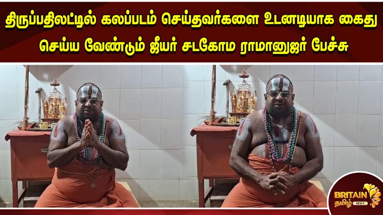 திருப்பதிலட்டில் கலப்படம் செய்தவர்களை உடனடியாக கைது செய்ய வேண்டும் ஜீயர் சடகோம ராமானுஜர் பேச்சு