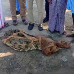 சிதம்பரம் அருகே குளத்தில் பொதுமக்கள் பார்வையில் கண் பட்ட 8 அடி நீல முதலையால் கிராம மக்கள் அச்சம்