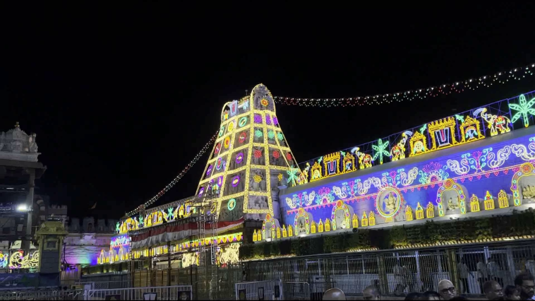 திருமலை திருப்பதி பிரம்மோற்சவம் அலங்கார மின்விளக்கு ஒளியில் ஜொலிக்கும் திருமலை