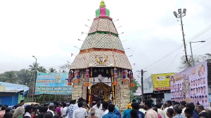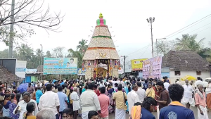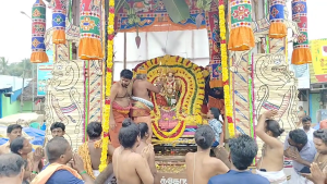 மகா தீபாராதனை செய்யப்பட்டு கோயில் செயல் அலுவலர் மற்றும் பொதுமக்கள் தேங்காய் உடைக்க திருத்தேரோட்டம் நடைபெற்றது. கொட்டும் மழையிலும் நான்கு ரத வீதிகளின் வழியாக வலம் வந்த தேரானது நிலையை அடைந்தது. வீடுகள்தோறும் பக்தர்கள் தீபாராதனை எடுத்து வழிபாடு நடத்தினர். நாளை முக்கிய விழாவாக தீர்த்தவாரி நடைபெற உள்ளது குறிப்பிடத்தக்கது.