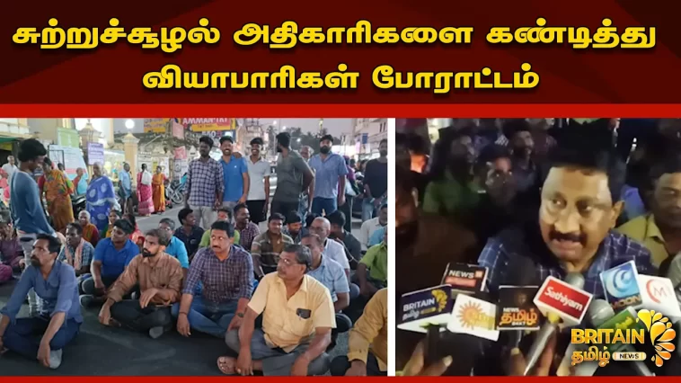 சுற்றுச்சூழல் அதிகாரிகளை கண்டித்து வியாபாரிகள் போராட்டம்
