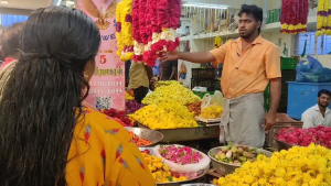 இதே போல் பன்னீர் ரோஸ் 400 ரூபாய், செவ்வந்தி 50 முதல் 100 ரூபாய் என விற்பனை செய்யப்படுகிறது. இதனால் எதிர்பார்த்து அளவிற்கு வியாபாரம் நடைபெறவில்லை என வியாபாரிகள் தெரிவித்துள்ளனர்.