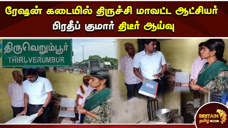 ரேஷன் கடையில் திருச்சி மாவட்ட ஆட்சியர் பிரதீப் குமார் திடீர் ஆய்வு