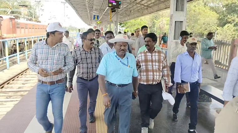 ரயில் நிலையத்தின் அடிப்படை வசதிகள் மற்றும் அமிரித் பாரத் திட்டத்தின் கீழ் நடைபெற்று வரும் பணிகள் குறித்து ஆய்வு மேற்கொண்டார்.