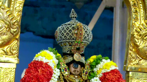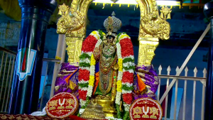 திருச்சி ஸ்ரீரங்கம் பகல் பத்து நான்காம் நாள் உற்சவம் நம்பெருமாள் திருநாரணன் முத்துக்கொண்டை அலங்காரத்தில் எழுந்தருளி பக்தர்களுக்கு சேவை சாதித்தார்.