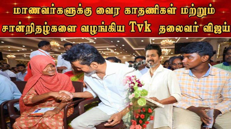 மாணவர்களுக்கு வைர காதணிகள் மற்றும் சான்றிதழ்களை வழங்கிய TVK தலைவர் விஜய்