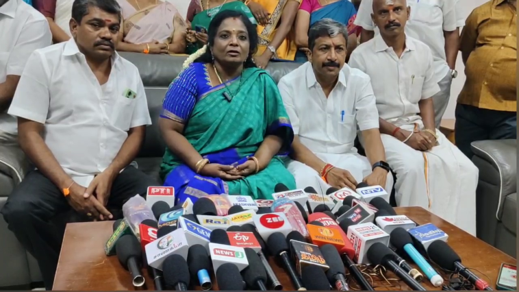விநாயகர் சதுர்த்திக்கு வாழ்த்து சொல்லாத தமிழக வெற்றி கழகத் தலைவர் விஜய், விஜயதசமிக்கு வாழ்த்து சொன்னது வரவேற்கத்தக்கது. இந்து மக்கள் உணர்வு குறித்து விஜய் உணர்ந்ததைப் போல விரைவில் தமிழக முதலமைச்சரும் உணர்ந்து இந்து பண்டிகைகளுக்கு வாழ்த்து தெரிவிப்பார் என பாஜக மூத்த தலைவர் தமிழிசை சௌந்தரராஜன் தெரிவித்துள்ளார்.