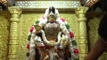 அதனை தொடா்ந்து 2வது திருக்கோலமாக பல்லக்கில் கன்று கொண்டு விளா மீது எாிந்து வீழ்த்தும் திருக்கோலத்தில் சுவாமி தாயாா் புறப்பாடு நடைபெற்றது.