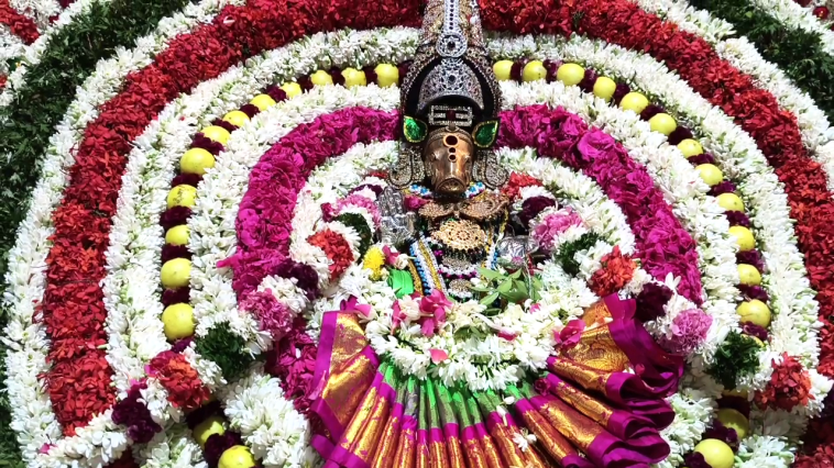 11 நாட்கள் நடைபெறும் விழாவின் நிறைவு விழா 5-ம் தேதி இரவு நடைபெற்றது. இதனையொட்டி வராஹி அம்மனுக்கு மல்லிகை, முல்லை, செம்பருத்தி உள்ளிட்ட பலவகையான மலர்களைக் கொண்டு சிறப்பு அலங்காரம் செய்யப்பட்டு மகா ஜீவ ஆராதனை காண்பிக்கப்பட்டது.