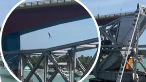 அப்போது பாம்பன் மையப்பகுதியில் அமைந்துள்ள செங்குத்து தூக்குபாலம் அருகே வீடியோ எடுத்துக் கொண்டே சென்றபோது பாம்பன் சாலை பாலத்திலிருந்து இளைஞர் ஒருவர் குதிப்பது வீடியோவில் பதிவாகி இருந்தது.