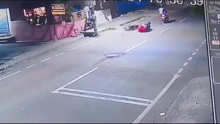 அப்போது கர்ப்பிணிப் பெண் கணவருடன் சாலையில் தடுமாறி விழும் வீடியோ சமூக வலைதளங்களில் வைரலாகி வருகிறது இந்த வீடியோ தொடர்பாக பெரிய கடை போலீசார் விசாரித்து வருகின்றனர்.