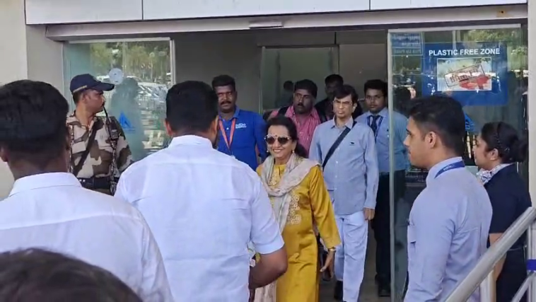 தமிழக வெற்றிக்கழக இரண்டாம் மாநில மாநாட்டில் பங்கேற்பதற்காக மதுரை விமான நிலையம் வந்தடைந்த விஜயின் பெற்றோர்.