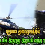 புதுவை துறைமுகத்தில் ஹெலிகாப்டரில் இருந்து இறங்கி வந்த ரஜினிகாந்த்