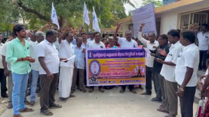 அப்போது தமிழ்நாடு அரசு கிராம உதவியாளர்களின் 30 ஆண்டு கால கோரிக்கையான காலமுறை ஊதியம் வழங்க வேண்டும், பணி பாதுகாப்பு,கருணை அடிப்படையில் வழங்கப்படும் வேலையை தற்போது 5 சதவீதமாக 25% ஆக மீண்டும் உயர்த்தி வழங்க வேண்டும் உள்ளிட்ட 9 அம்ச கோரிக்கைகளை வலியுறுத்தி முழக்கங்களை எழுப்பினர்