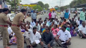 மேலும் கிராம உதவியாளருக்கு வரையறுக்கப்பட்ட காலமுறை ஊதியம் வழங்க கோரி வட்டாட்சியர் அலுவலகம் முன்பு கருப்பு பேட்ச் அணிந்து கோஷங்கள் எழுப்பி வந்த நிலையில், 75 க்கும் மேற்பட்ட கிராம உதவியாளர்கள் திண்டிவனம் சாலை செஞ்சி வட்டாட்சியர் அலுவலகம் எதிரில் சாலையில் அமர்ந்து போராட்டத்தில் ஈடுபட்டனர்.