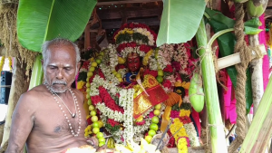மயிலாடுதுறை அருகே கீரனூரில் தேரினை தலையில் சுமந்து சென்று கிராம மக்கள் நூதன வழிபாடு