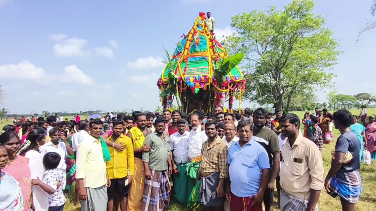 இந்நிலையில் முக்கிய திருவிழாவான தேர் திருவிழா இன்று காலை நடைபெற்றது. இதில் பங்கேற்ற பக்தர்கள் தேரினை தலையில் சுமந்து ஊர் எல்லையான வயல் பகுதியை சுற்றி வந்து மீண்டும் கோவிலை அடைந்தனர்.