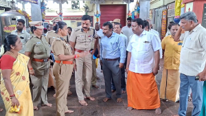 பக்தர்களின் பாதுகாப்பை கருதி பக்தர்கள் அதிகம் கூடும் இடங்களை ஆய்வு செய்து தேவையான ஆலோசனைகளை இந்து சமய அறநிலைத்துறை அதிகாரி உதவி ஆணையர் சக்திவேல் அவர்களிடம் தெரிவித்து சென்றனர்.