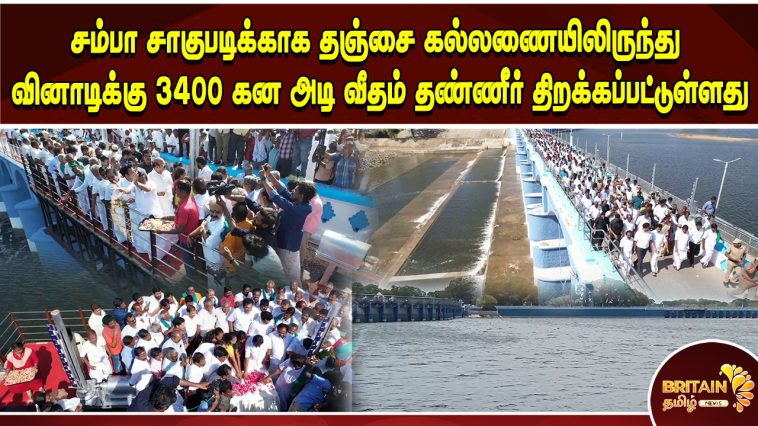 சம்பா சாகுபடிக்காக தஞ்சை கல்லணையிலிருந்து வினாடிக்கு 3400 கன அடி வீதம் தண்ணீர் திறக்கப்பட்டுள்ளது