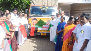 தஞ்சை மத்திய மாவட்ட திமுக சார்பில் புயலால் பாதிக்கப்பட்ட விழுப்புரம் மாவட்டத்திற்கு நிவாரண பொருட்களை உயர் கல்வித் துறை அமைச்சர் கோவி. செழியன் தஞ்சாவூர் கலைஞர் அறிவாலயத்திலிருந்து சுமார் ஆயிரம் அவர்களுக்கு தேவையான அத்தியாவசிய பொருட்கள் அரிசி, மளிகை, பிஸ்கட் உள்ளிட்ட பொருட்களை வாகனத்தில் அனுப்பி வைத்தார்.