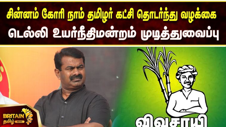 கரும்பு விவசாயி சின்னம் கோரி நாம் தமிழர் கட்சி தொடர்ந்து வழக்கை டெல்லி உயர்நீதிமன்றம் முடித்து வைத்துள்ளது.