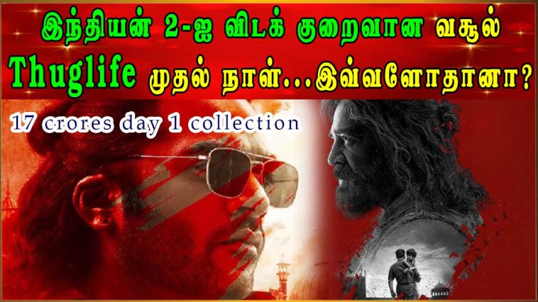 இந்திய அளவில் ThugLife 17 கோடியை முதல் நாளில் வசூல் செய்திருக்கிறது வெளிநாட்டில் 20 கோடி ரூபாய் வசூல் செய்யப்பட்டிருக்கிறது.