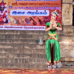 ஆஷாட நவராத்திரி விழாவின் பரதநாட்டிய நிகழ்ச்சியில், மெய்மறந்து மேடையில் ஏறி நடனம் ஆடிய சிறுமி.