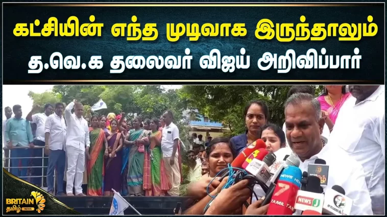 தமிழக வெற்றி கழக கட்சியின் எந்த முடிவாக இருந்தாலும் கட்சியின் தலைவர் தான் எடுப்பார் என கடலூரில் சுதந்திரப் போராட்ட வீரர் தியாகி அஞ்சலை அம்மாளின் சிலைக்கு மாலை அணிவித்த பின் அக்கட்சியின் பொதுச்செயலாளர் புஸ்ஸி ஆனந்த் பேட்டி அளித்துள்ளார்.