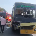 அரசு பேருந்து டயர் வெடித்து கர்நாடகா டாடா ஏசி வாகன மீது மோதியதில் டாடா ஏசி வாகன டிரைவர் சம்பவ இடத்திலேயே பலி.