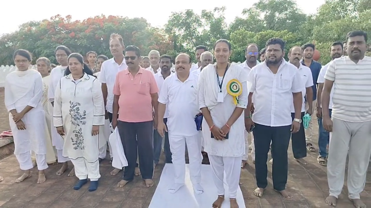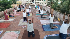 உலக யோகா தினத்தை முன்னிட்டு யோகா பயிற்சி.